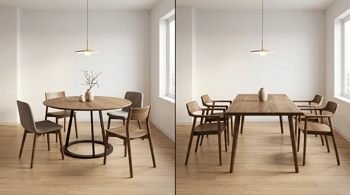 丸テーブル vs 長方形テーブル|後悔しないダイニングテーブルの選び方